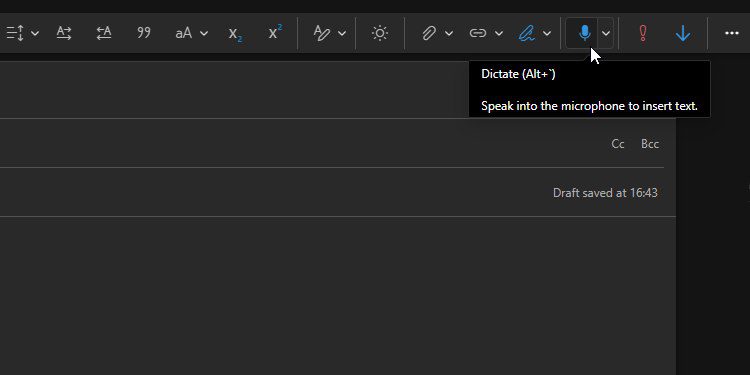 ابزار Dictate Microsoft Outlook به شما امکان میدهد از میکروفون خود برای نوشتن ایمیل استفاده کنید. پس از روشن شدن، هر چیزی که در میکروفون بگویید در متن ایمیل نوشته میشود. برای افرادی که تایپ کردن برایشان سخت است یا افرادی که ترجیح میدهند افکار خود را بلند بگویند، گزینه خوبی است.