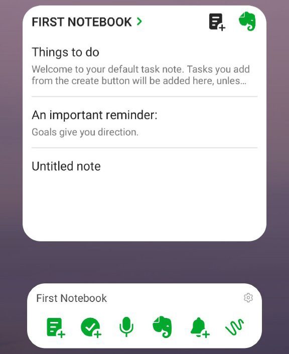 ویجت نوار اقدام، مجموعه‌ای از میانبرها را ارائه می‌دهد که به شما امکان می‌دهد اقدامات را از صفحه اصلی انجام دهید. گزینه Simple Note به شما امکان می‌دهد بدون پیمایش به برنامه، یادداشتی (با عنوان) به فضای کاری خود اضافه کنید. همچنین می‌توانید با ضربه زدن روی نماد Simple Task، یک یادداشت فوری اضافه کنید.
