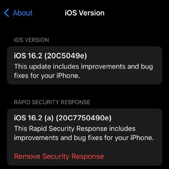 بروزرسانی Rapid Security Response یک بروزرسانی امنیتی جزئی است که اپل برای اصلاح آسیب‌پذیری‌هایی که بین بروزرسانی‌های استاندارد iOS یا macOS ظاهر می‌شوند، عرضه می‌کند. آن‌ها را به‌عنوان اصلاحات فوری برای رفع نقص‌های امنیتی در نظر بگیرید. اپل این بروزرسانی‌ها را با نسخه iOS و به دنبال آن یک حرف در پرانتز نشان می‌دهد – به عنوان مثال، iOS 16.5.1 (a).