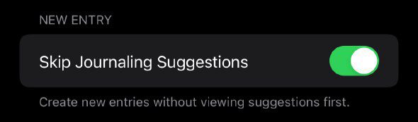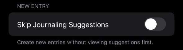 اگر می‌خواهید فقط زمانی که چیزی در ذهنتان است بنویسید، می‌توانید پیشنهادات ژورنال را غیرفعال کنید. برای انجام این کار، به Settings > Journal بروید و سوئیچ کنار «Skip Journaling Suggestions خاموش کنید.