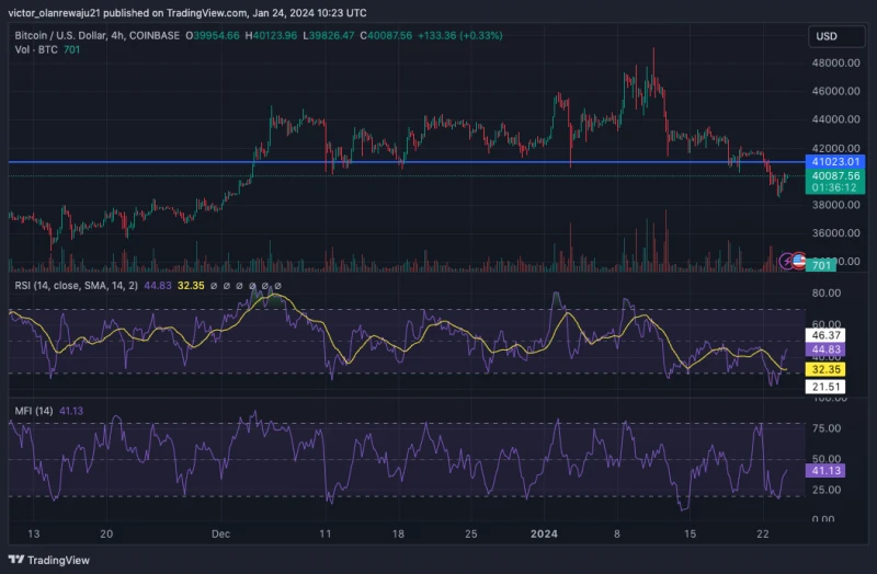 با این حال، خریداران تلاش کرده اند تا وضعیت نزولی را خنثی کنند. این به دلیل سیگنال های نشان داده شده توسط RSI بود. در زمان نوشتن این مقاله، RIS به 44.78 افزایش یافته است که به بیتکوین کمک کرد تا به بالای سطوح 40000 دلار برسد.
