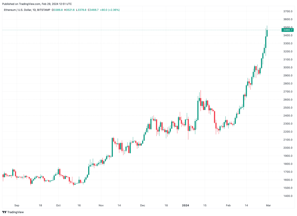 به گزارش پلتفرم تحلیلی آن‌چین سنتیمنت، اتریوم بالاترین نسبت تراکنش‌های آن‌چین سودآور را از ماه نوامبر (آبان) دارد. همچنین، ارزش آن طی یک ماه گذشته بیشتر از ۵۰درصد افزایش یافته است و در زمان نگارش این گزارش در محدوده 3500 دلار معامله می‌شود.