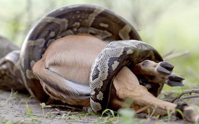 پژوهشگران دو گونه مار پیتون (پیتون مشبک و پیتون برمهای) را بررسی کردند که بیش از 12 ماه در مزارعی در تایلند و ویتنام پرورش داده شده بودند. نسبت غذای مصرفی به گوشت تولیدی (ضریب تبدیل) در مارهای پیتون 1.2 بود، درحالیکه این نسبت در ماهی سالمون 1.5، در طیور 2.8، در خوک 6 و در گاو گوشتی برابر 10 است.
