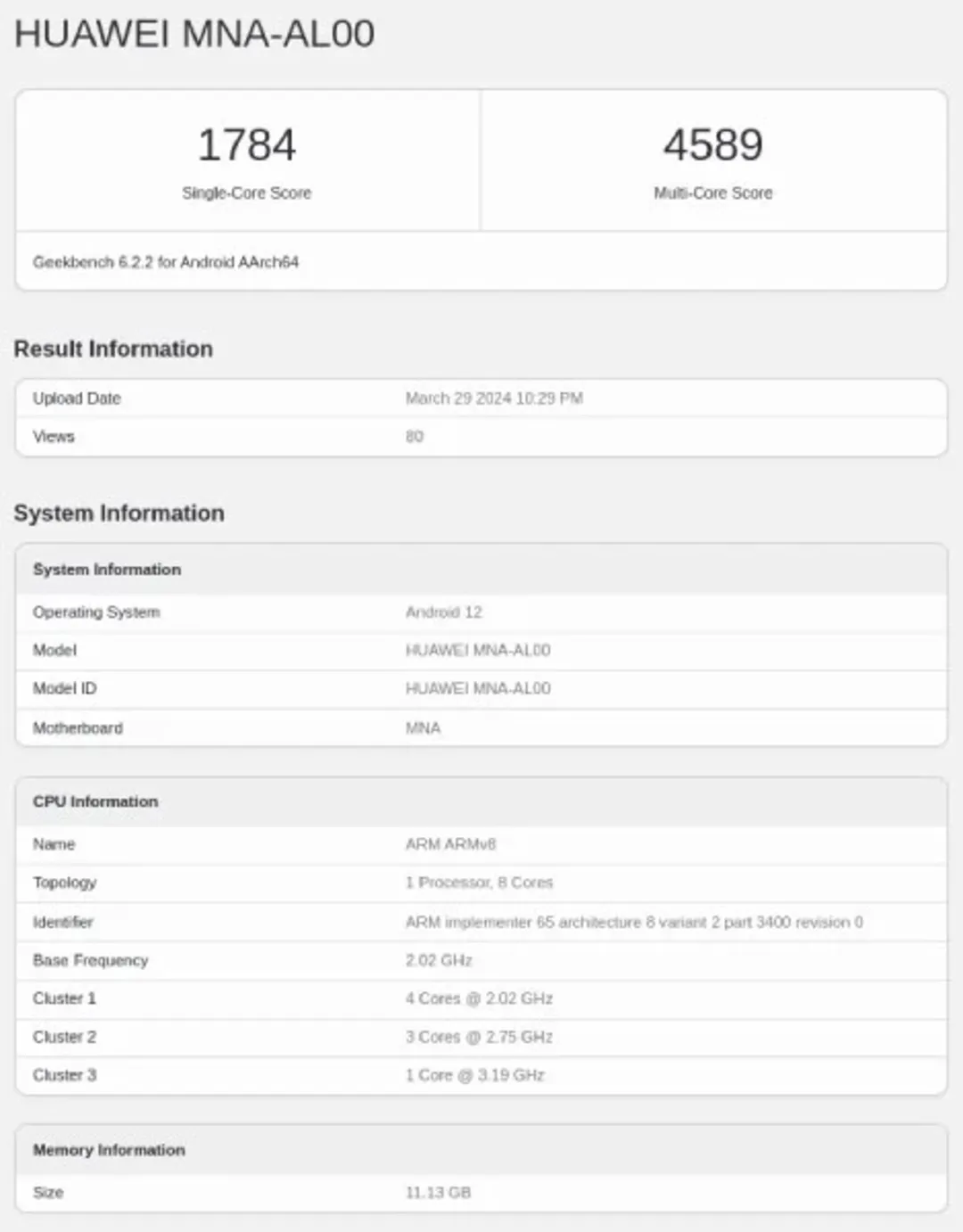 به‌طور دقیق‌تر، سه گوشی هوشمند هواوی با شماره‌مدل AL10 و AL80 و AL00 در بنچمارک گیک‌بنچ رؤیت شده‌اند.