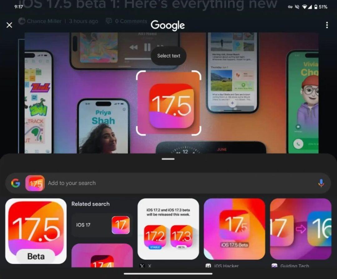 گوشیهای سری پیکسل 6 و گلکسی S23 نیز مدتی پیش به ویژگی Circle to Search مجهز شدند. قابلیت مذکور به کاربران اجازه میدهد تا هنگام تماشای عکس و ویدیو یا گشتوگذار در شبکههای اجتماعی تنها با کشیدن یک دایره دور سوژهی مدنظر، آن را به راحتترین شکل ممکن جستوجو کنند.