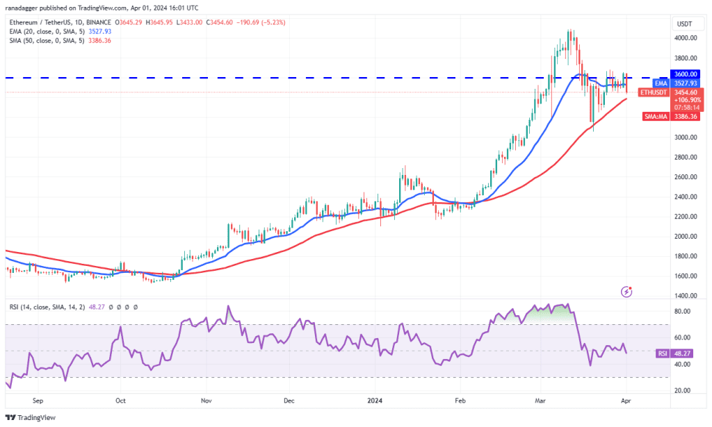 فروشندگان سعی خواهند کرد از این موقعیت استفاده کنند و قیمت را به زیر میانگین متحرک ساده 50 روزه در سطح 3386 دلاری بکشانند. اگر چنین اتفاقی رخ دهد، احتمالا حجم فروش افزایش یافته و قیمت اتریوم تا 3250 دلار و سپس تا حمایت کلیدی 3056 دلار سقوط خواهد کرد.