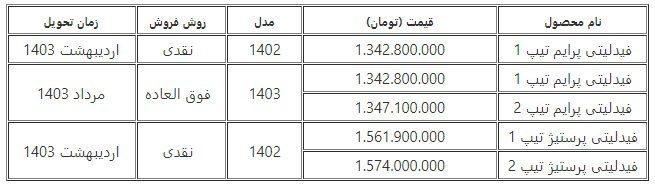 فروش خودروهای فیدلیتی و دیگنیتی در تیپهای مختلف شروع شد.