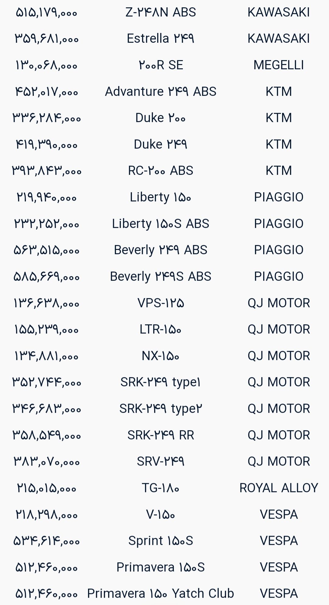 به گزارش رسانه مدیاتی، شرکت کویرموتور، با بیش از 66 سال تجربه در صنعت موتورسیکلت ایران، با تمرکز بر تغییر نگرش جامعه به موتورسیکلت و پاسخ به نیازهای مشتریان، جایگاه ویژه‌ای در این صنعت دارد. هدف این شرکت ارائه بهترین موتورسیکلت‌های با کیفیت در ایران بوده و با توجه به سیاست‌های کاهش ارزبری و مصرف سوخت، سعی در جایگزینی موتور سیکلت با خودروهای تک و دو سرنشین دارد. شرکت به دستاوردهای مانند کسب مقام اول در خدمات پس از فروش و ایجاد تعمیرگاه‌ها و خط تولید انجین موتورسیکلت در ایران افتخار دارد. در ادامه لیست قیمت‌های موتورسیکلت‌های کویر موتور را مشاهده خواهید کرد.