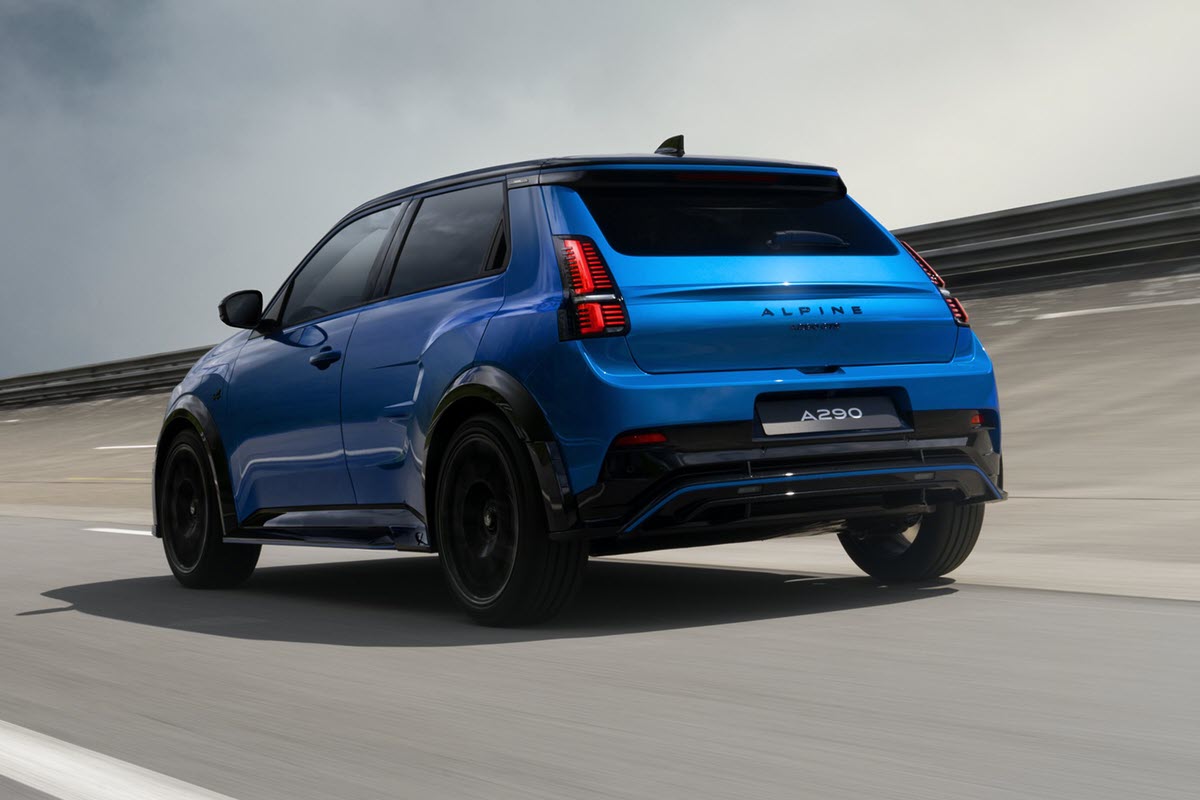 مدل‌های GT و GT پریمیوم در 7.4 ثانیه به سرعت 100 کیلومتر بر ساعت می‌رسند. آلپاین A290 به طور استاندارد با یک باتری 52 کیلووات ساعتی عرضه می‌شود که برد WLTP تقریباً 380 کیلومتری را ارائه می‌دهد.